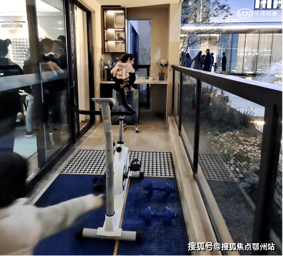 有人看到阳台对面的健身房,不禁问顾问,交付时是否有?顾问表示,这就是实际交付的健身房。后期售楼处所在将作为物业用房,健身房也在其中。